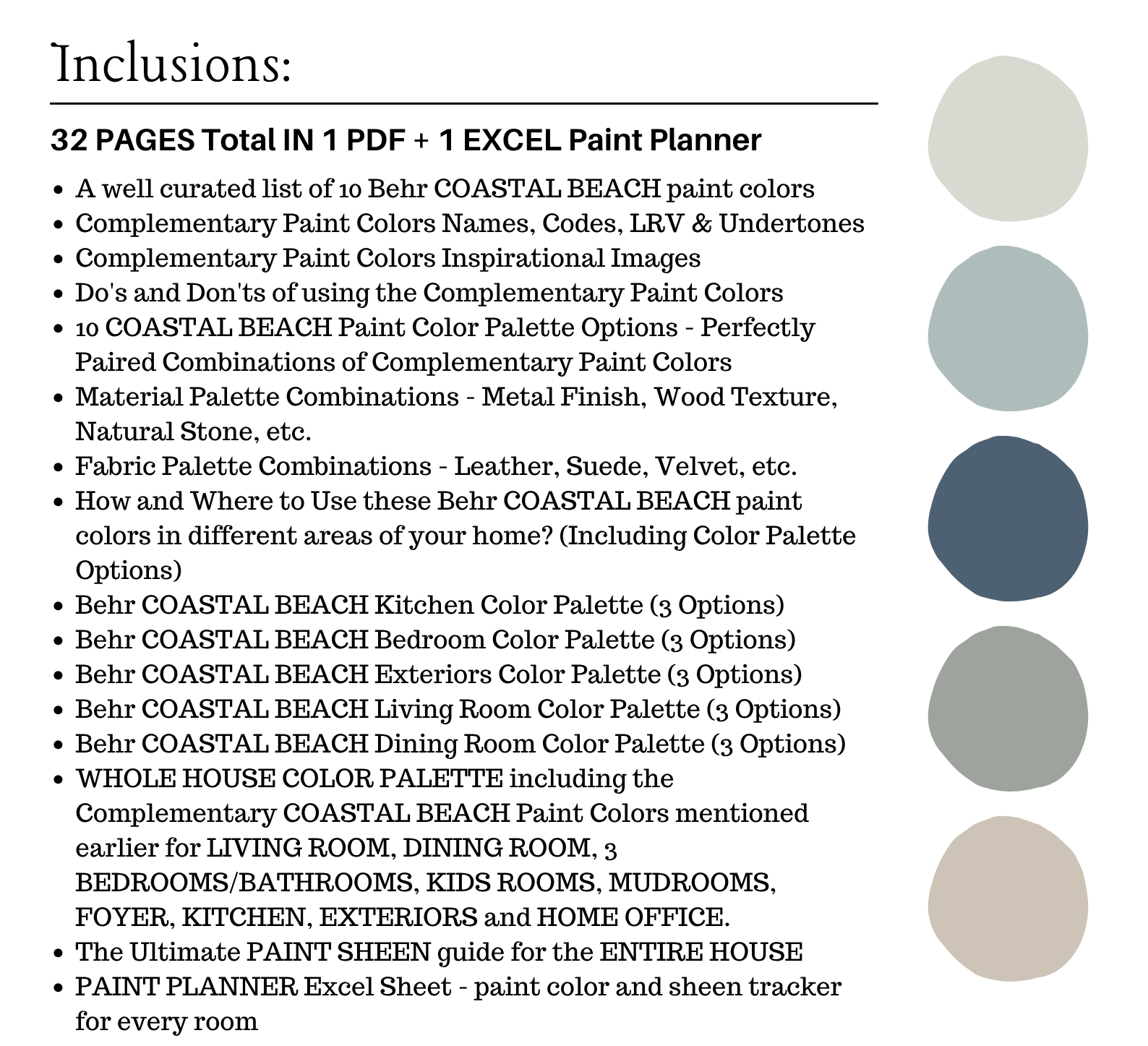 NOTE: This LISTING is MORE than color palette suggestions! This is a *digital download* PDF that contains 32 pages total in 1 PDF + 1 Excel Sheet of information to assist you with quick and easy color selections in your home.