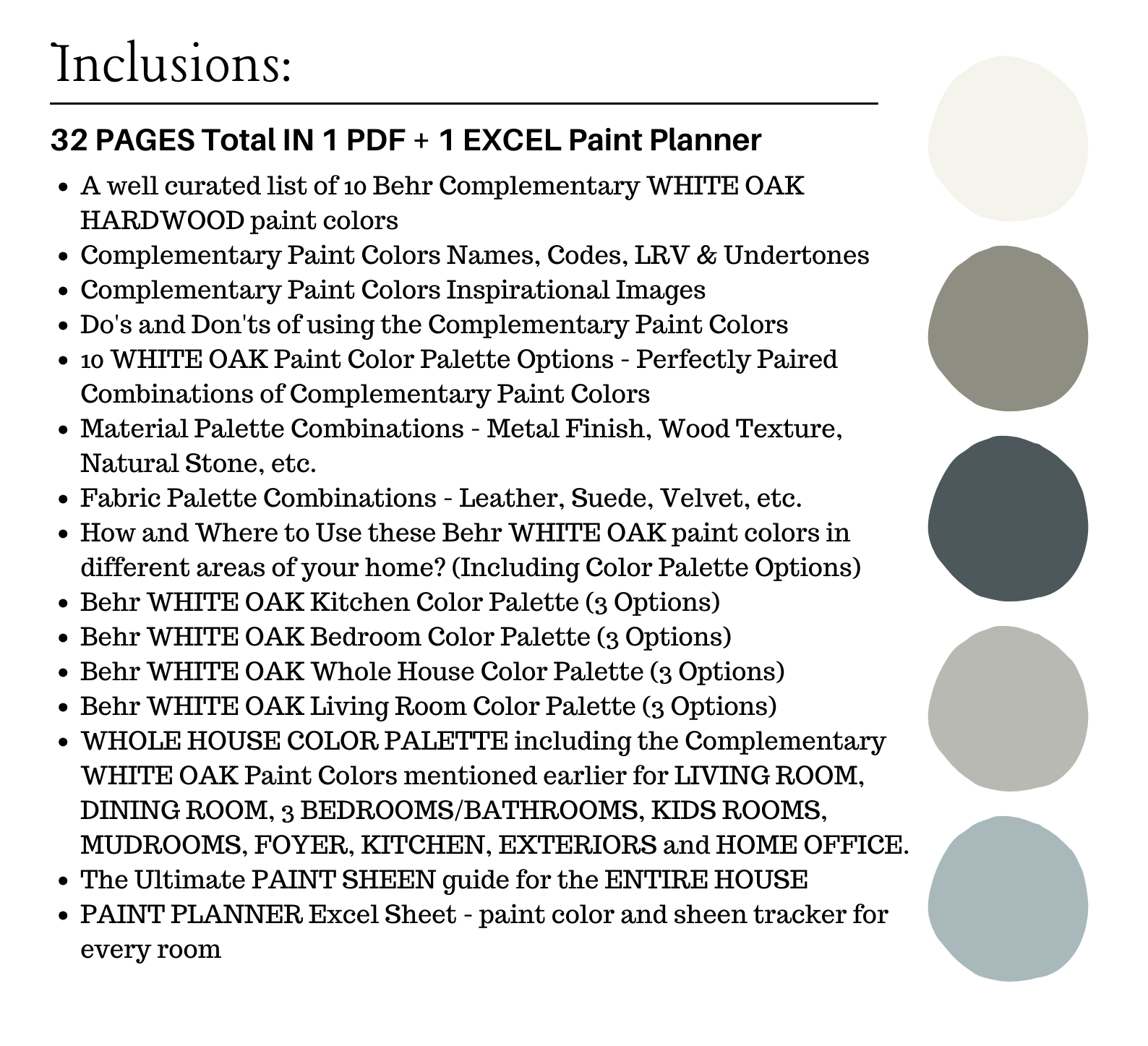 NOTE: This LISTING is MORE than color palette suggestions! This is a *digital download* PDF that contains 32 pages total in 1 PDF + 1 Excel Sheet of information to assist you with quick and easy color selections in your home.