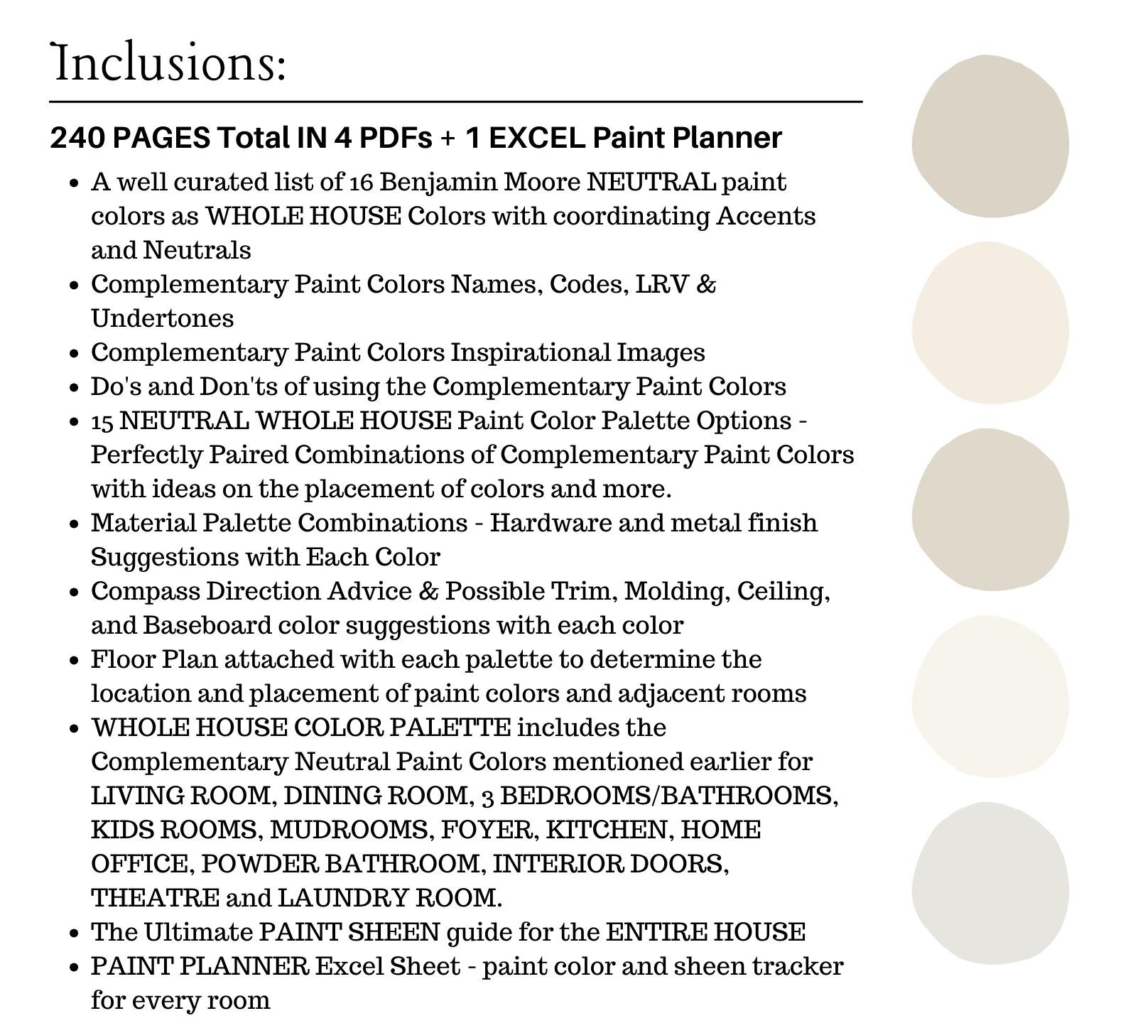 You can also find my listing on Etsy – Benjamin Moore 16 NEUTRAL WHOLE HOUSE Color Palettes