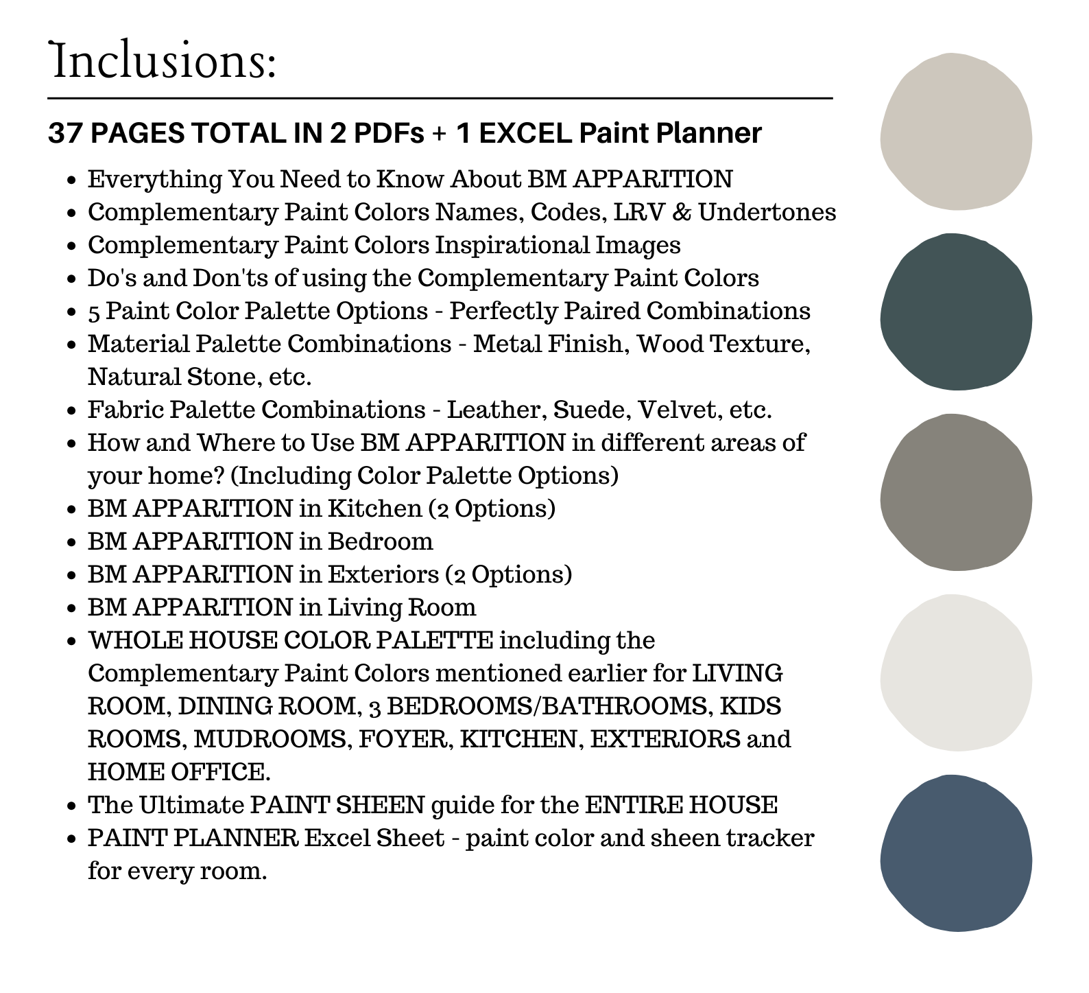This is a *digital download* Benjamin Moore APPARITION Color Palette PDF that contains 38 pages total of information to assist you with quick and easy color selections in your home.