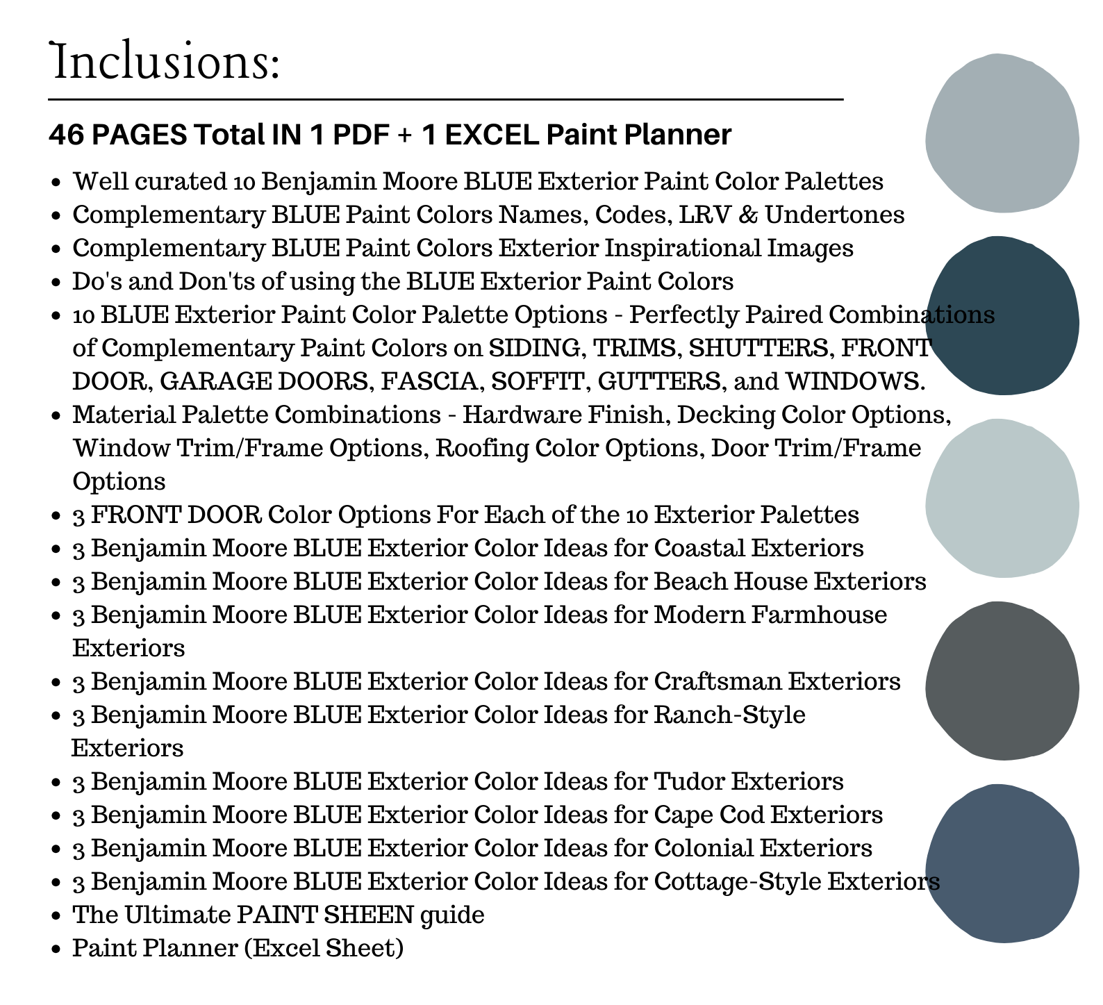 NOTE: This LISTING is MORE than color palette suggestions! This is a *digital download* PDF that contains 46 pages total in 1 PDF + 1 Excel Sheet of information to assist you with quick and easy EXTERIOR color selections in your home.