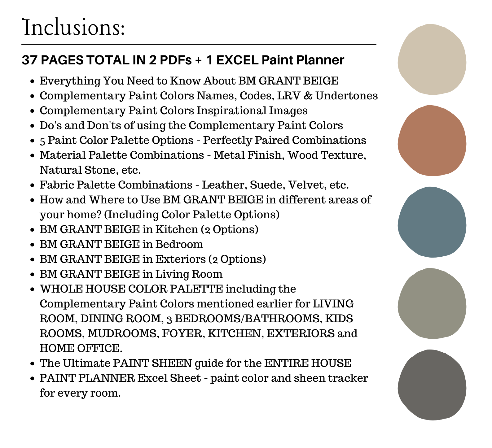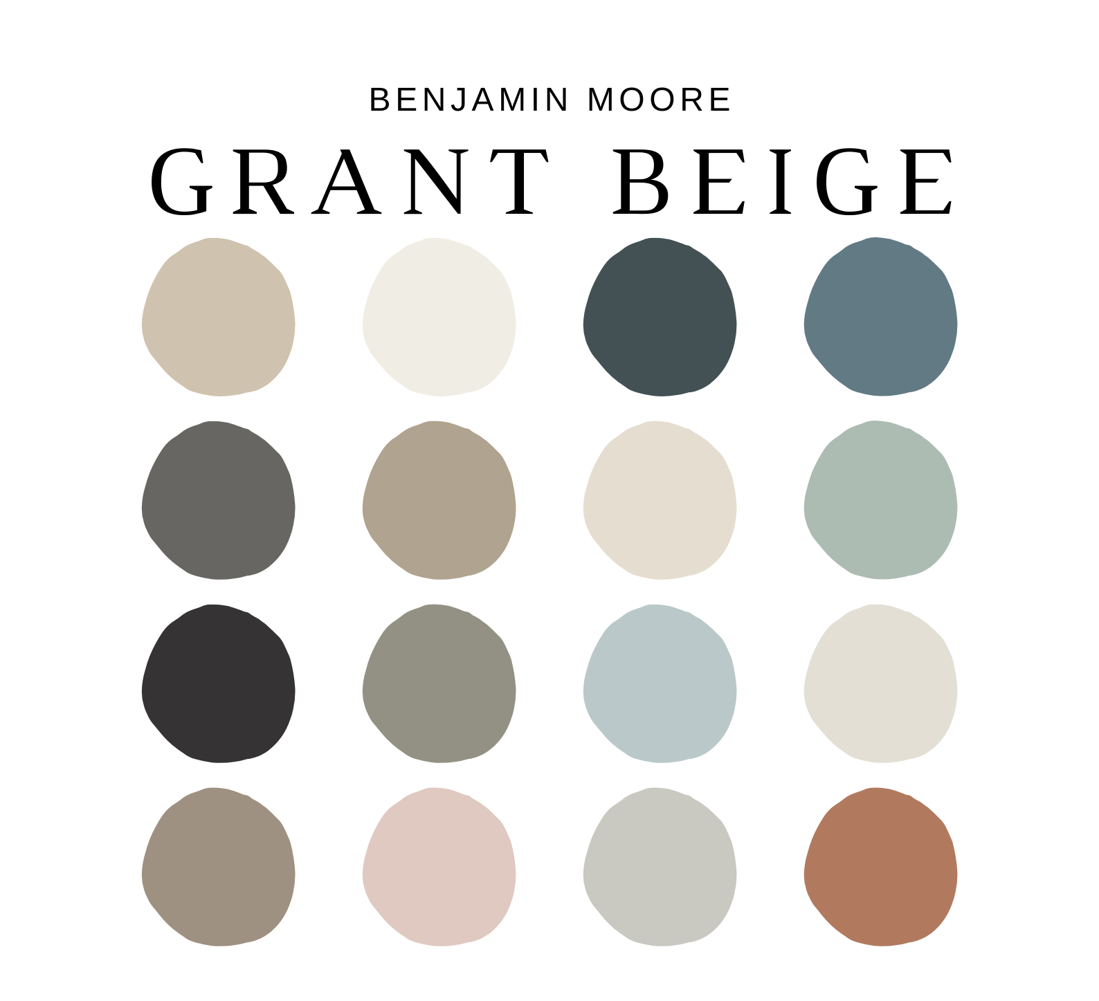 This is a *digital download* Benjamin Moore GRANT BEIGE Color Palette PDF that contains 38 pages total of information to assist you with quick and easy color selections in your home.