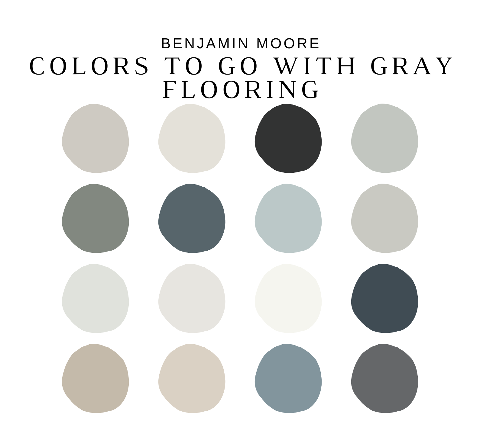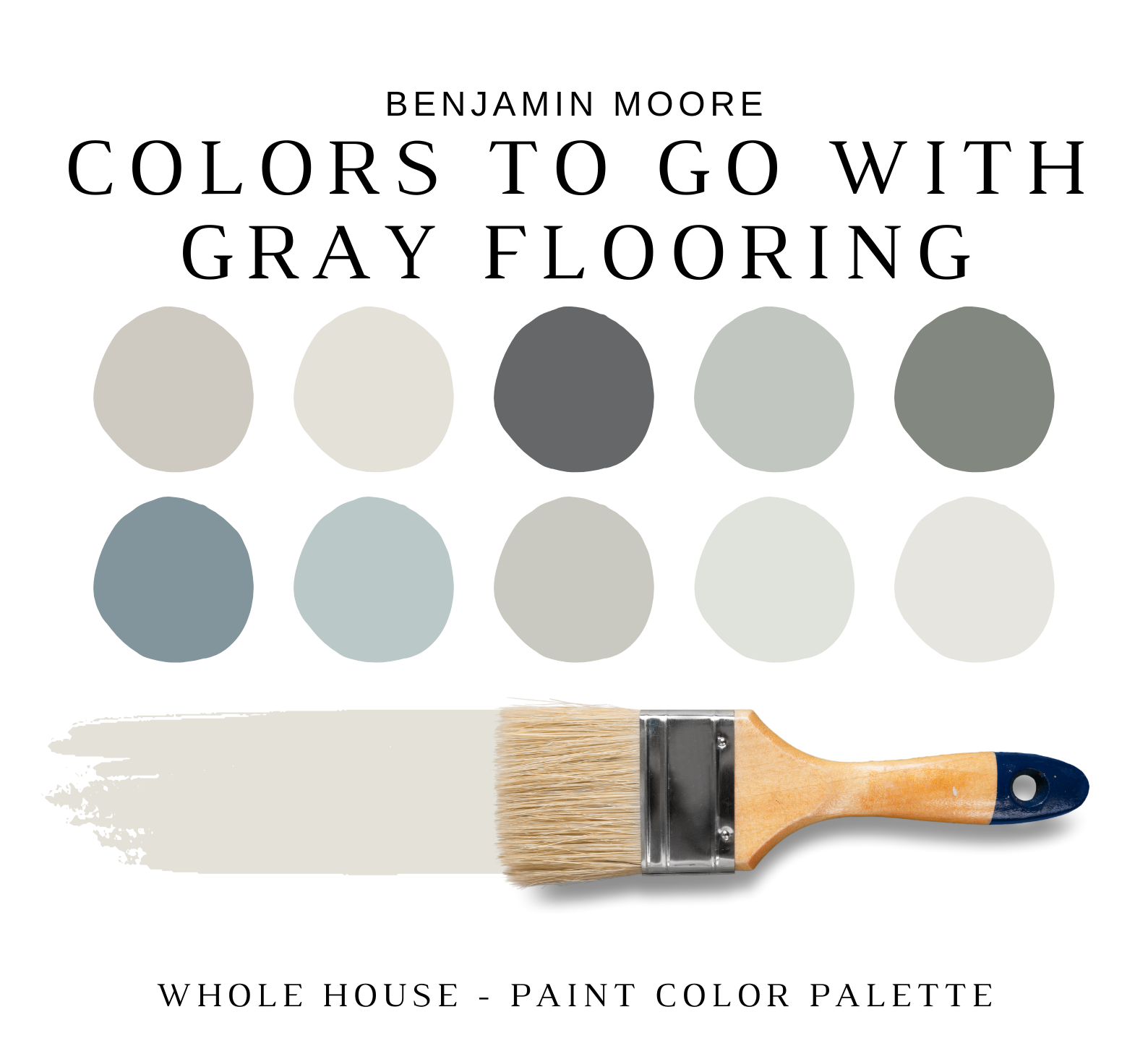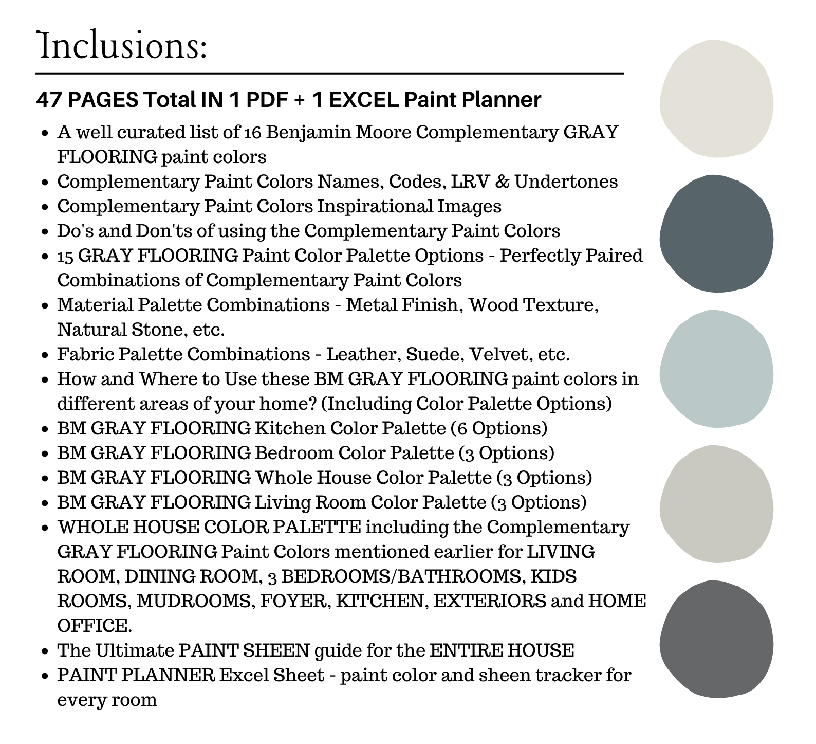 The PDF contains EVERYTHING you need to KNOW about Benjamin Moore Paint Colors that complement GRAY HARDWOOD flooring and cabinets!  It includes a list of 16 complementary Benjamin Moore GRAY HARDWOOD Paint Colors that complement each other and work as a WHOLE house color scheme. This is a PREPACKAGED Benjamin Moore GRAY HARDWOOD Color Palette Selection Listing that includes the Benjamin Moore complementary color recommendations for walls, ceilings, trims, moldings, doors, and window frames – for your WHOLE HOUSE.