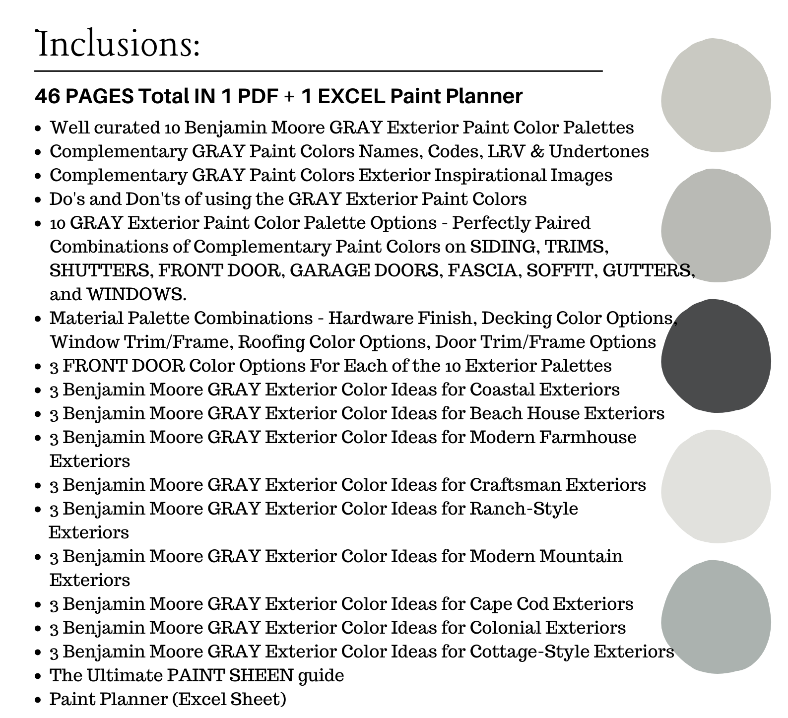 NOTE: This LISTING is MORE than color palette suggestions! This is a *digital download* PDF that contains 46 pages total in 1 PDF + 1 Excel Sheet of information to assist you with quick and easy EXTERIOR color selections in your home.