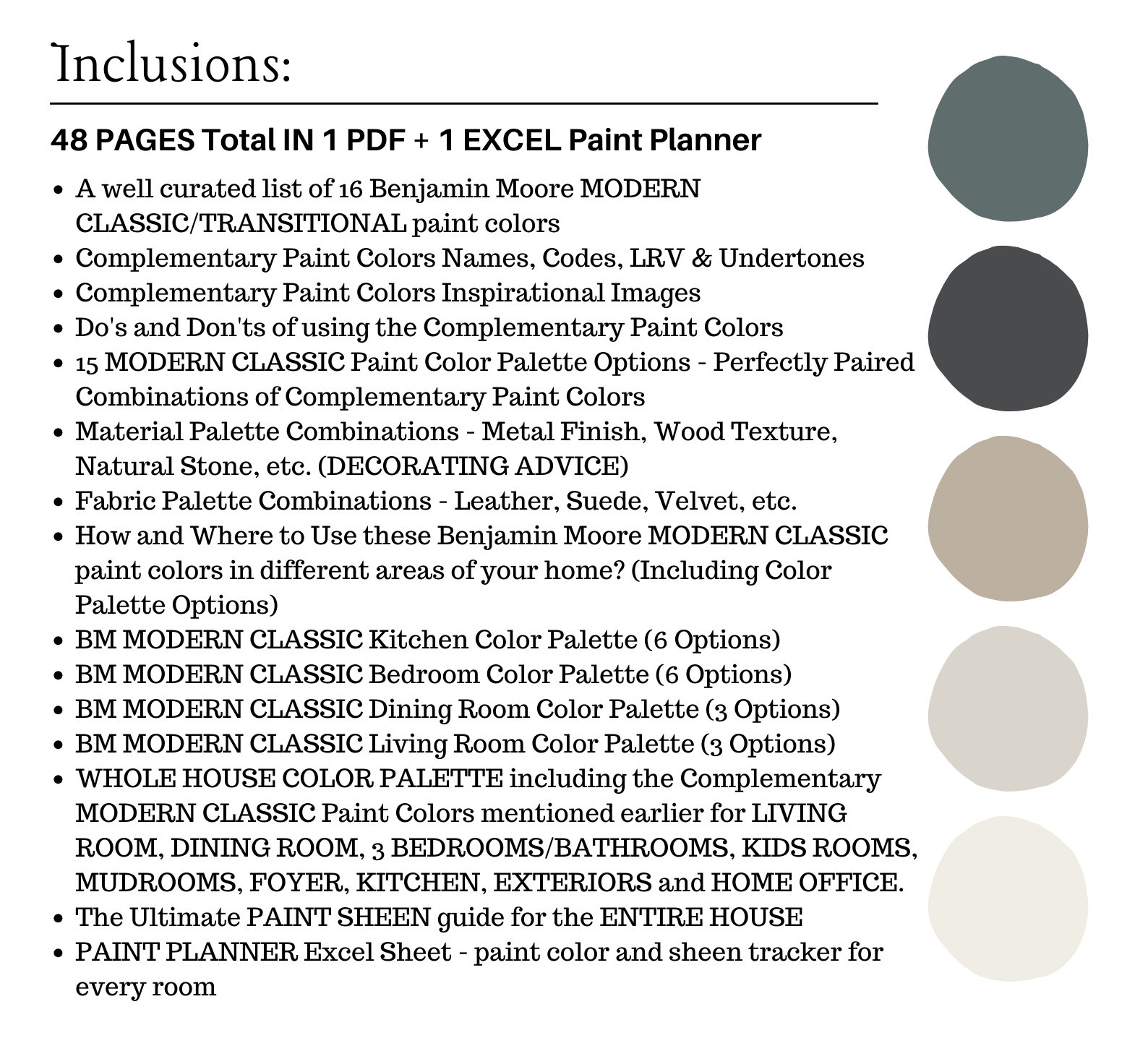 NOTE: This LISTING is MORE than color palette suggestions! This is a *digital download* PDF that contains 47 pages total in 1 PDF + 1 Excel Sheet of information to assist you with quick and easy color selections in your home.