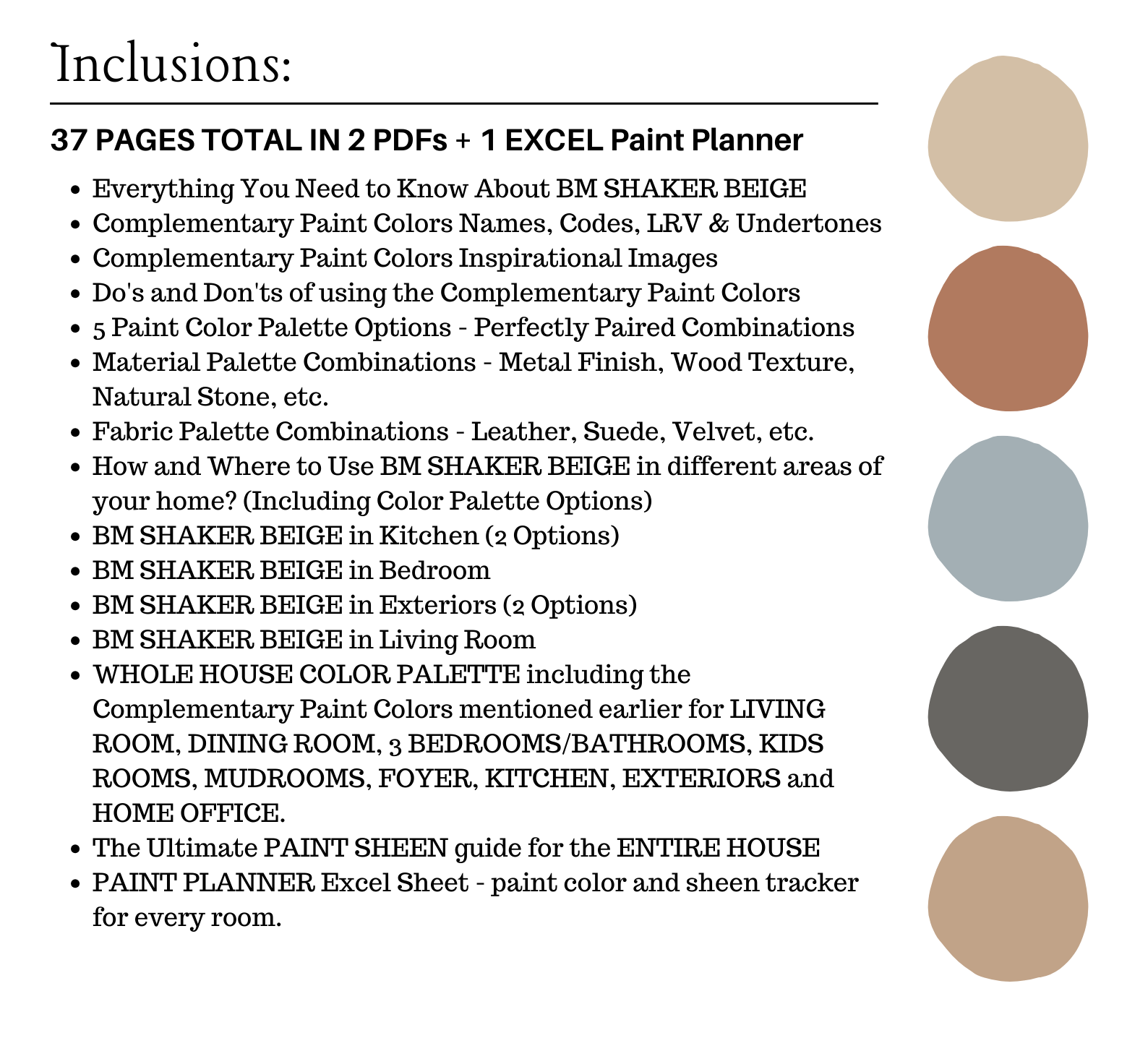 This is a *digital download* Benjamin Moore SHAKER BEIGE Color Palette PDF that contains 38 pages total of information to assist you with quick and easy color selections in your home.