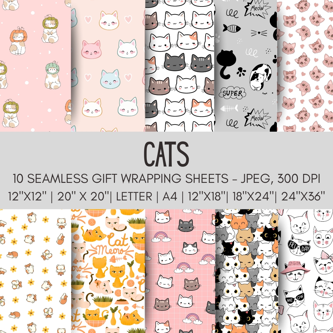 🎁🐱 Printable Cat Gift Wrap – Cute Cat-Themed Wrapping Paper (Instant Download)