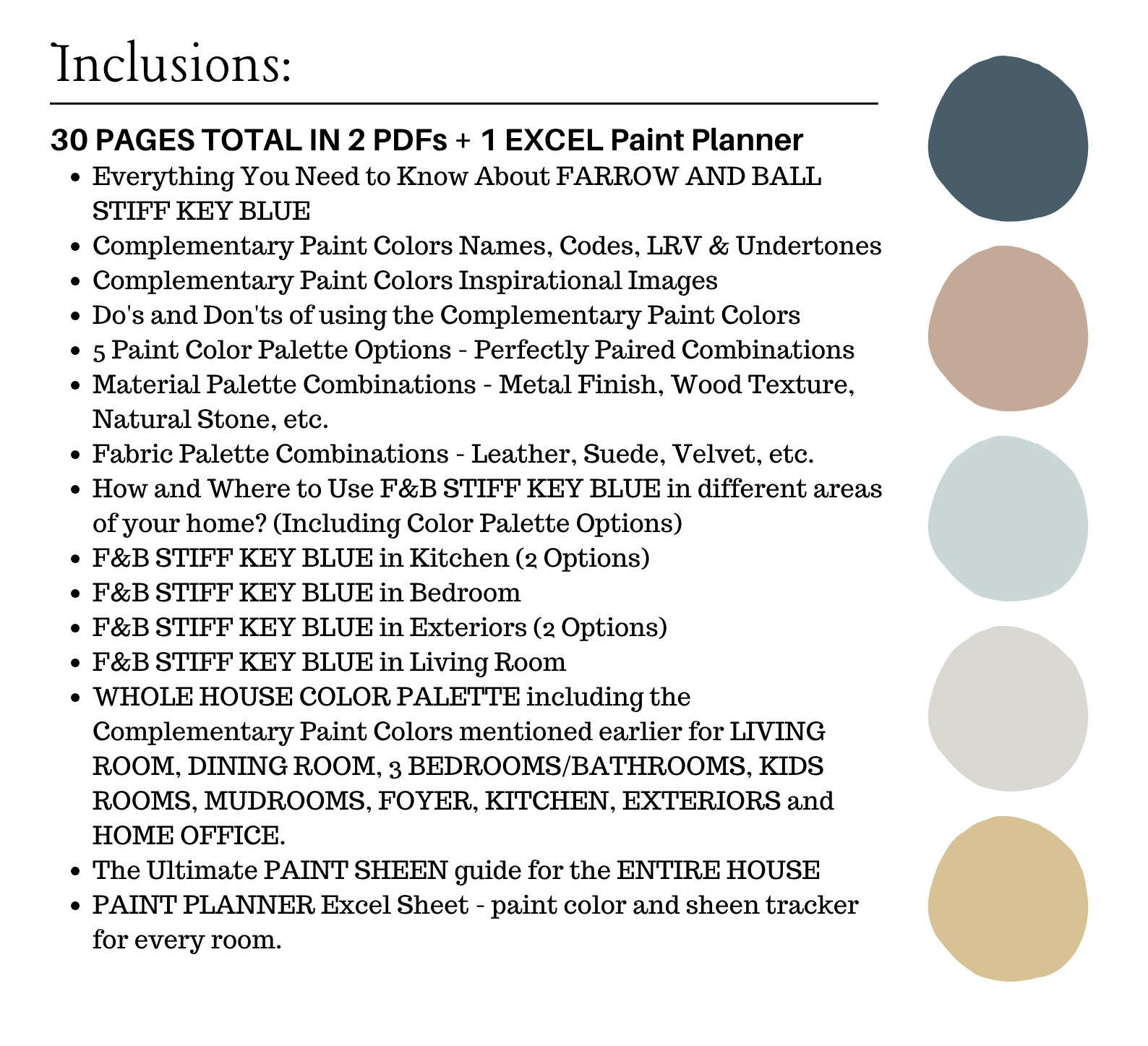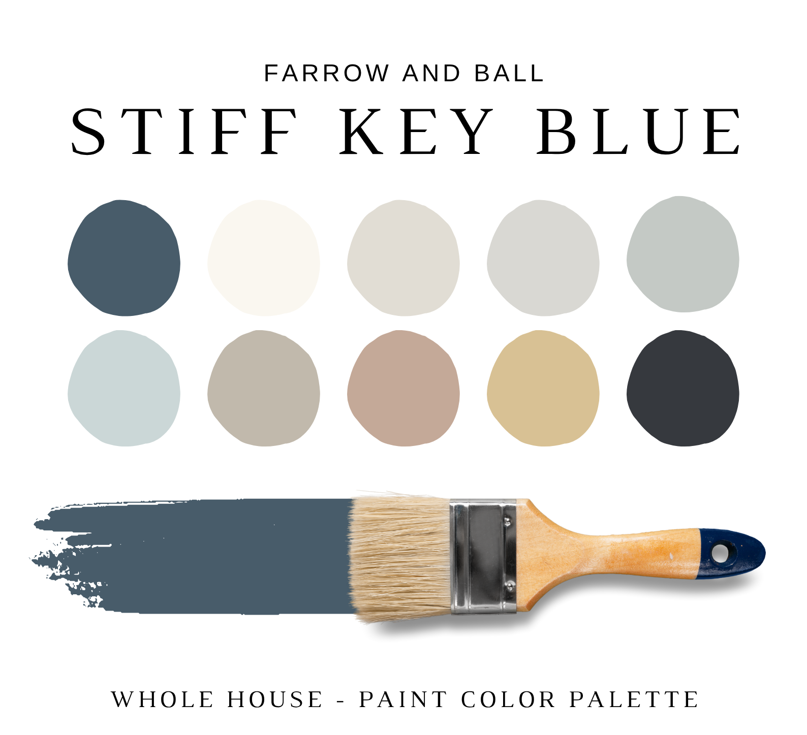 This is a *digital download* Farrow and Ball STIFF KEY BLUE Color Palette PDF that contains 30 pages total of information to assist you with quick and easy color selections in your home.