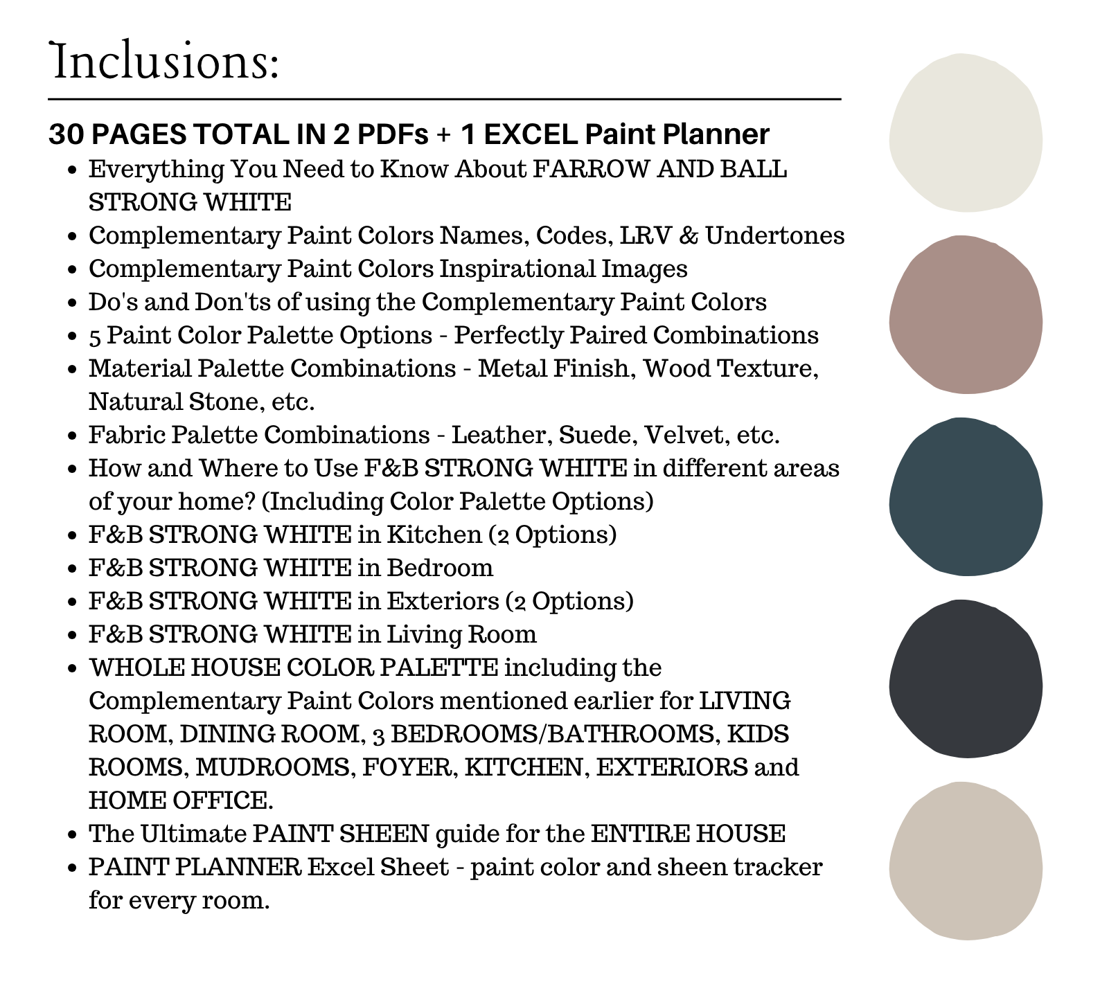 This is a *digital download* Farrow and Ball STRONG WHITE Color Palette PDF that contains 30 pages total of information to assist you with quick and easy color selections in your home.