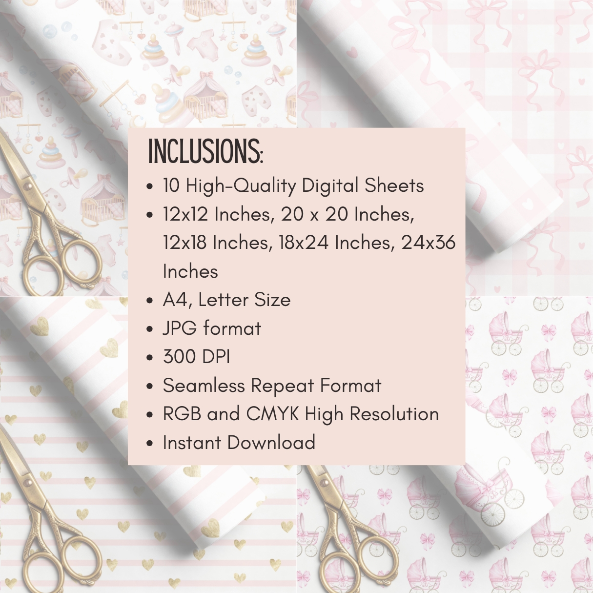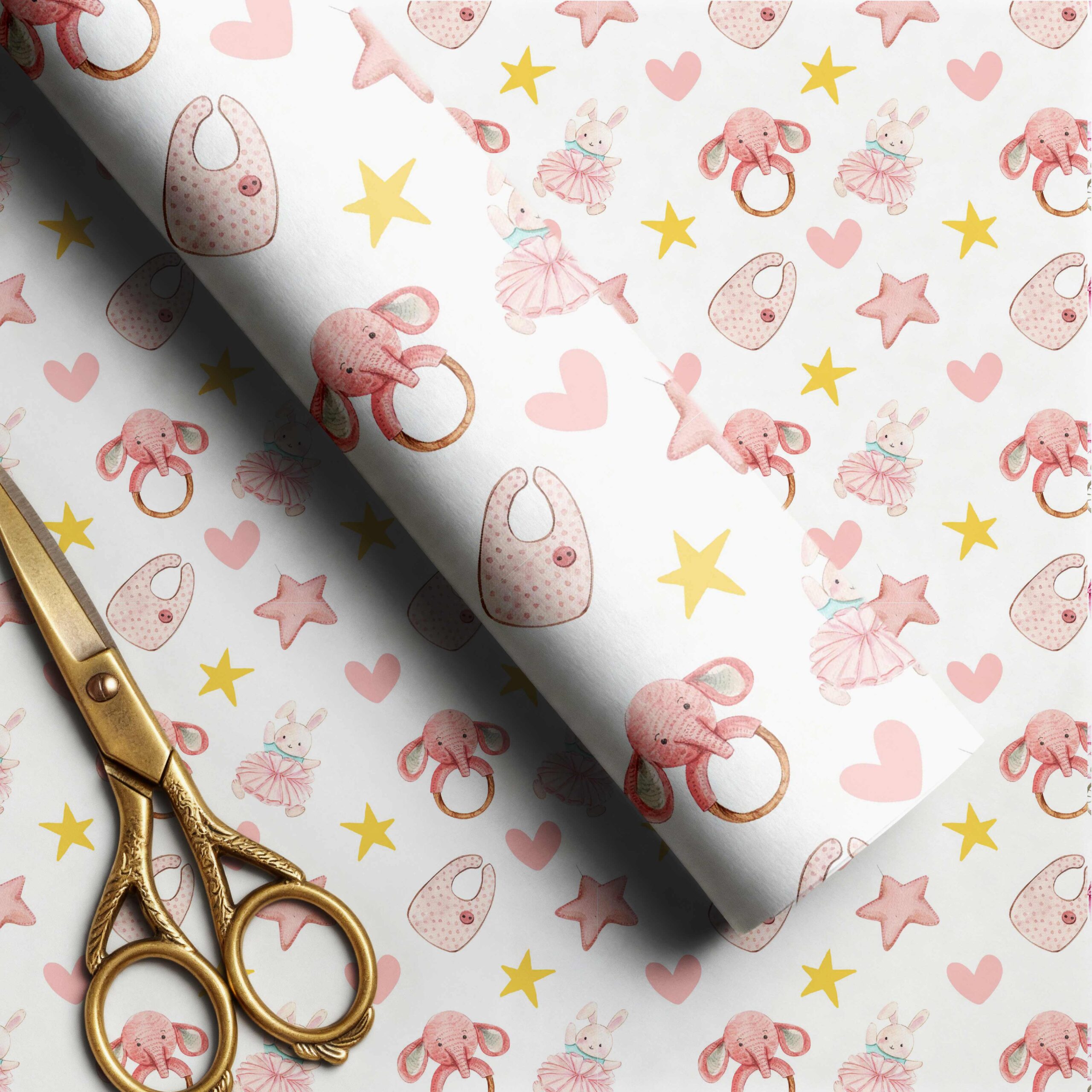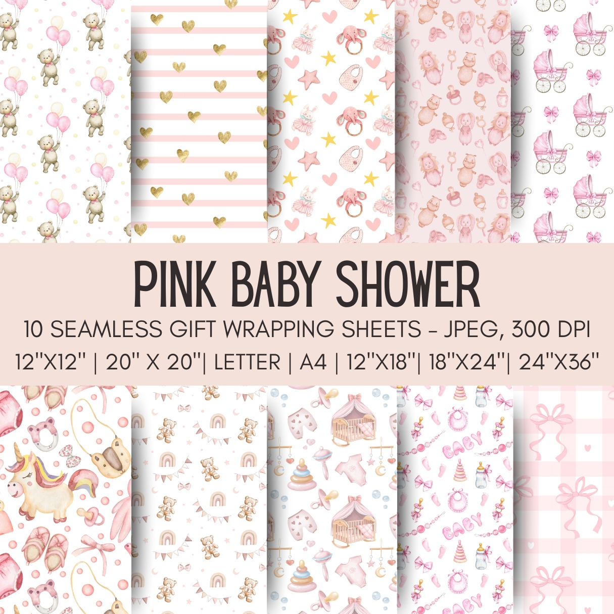 Pink Baby Shower Printable Gift Wrap – Instant Download