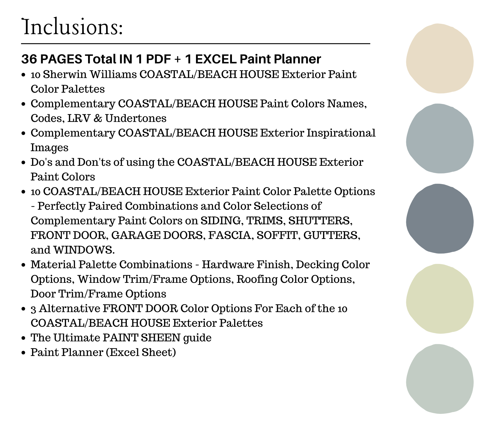 NOTE: This LISTING is MORE than color palette suggestions! This is a *digital download* PDF that contains 46 pages total in 1 PDF + 1 Excel Sheet of information to assist you with quick and easy EXTERIOR color selections in your home.