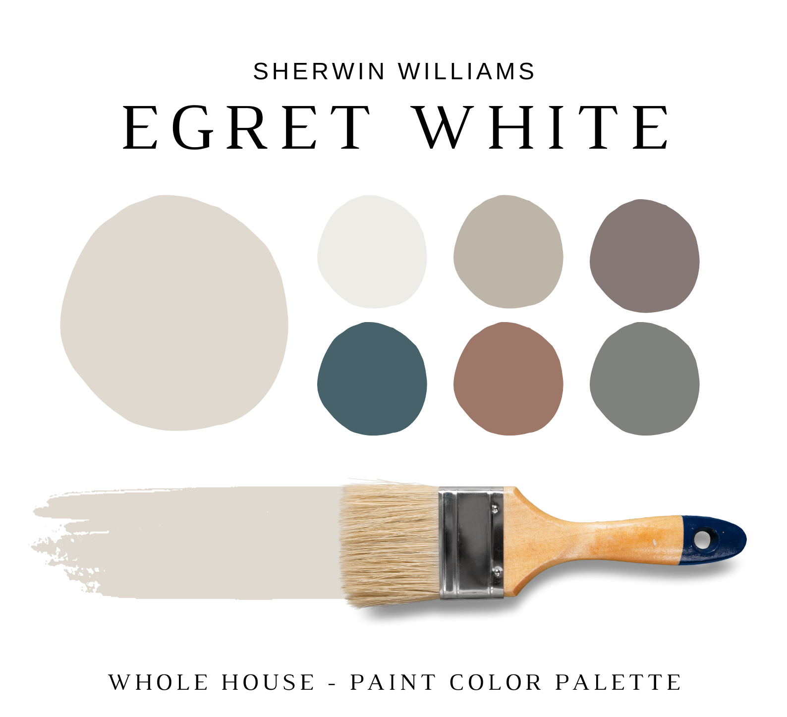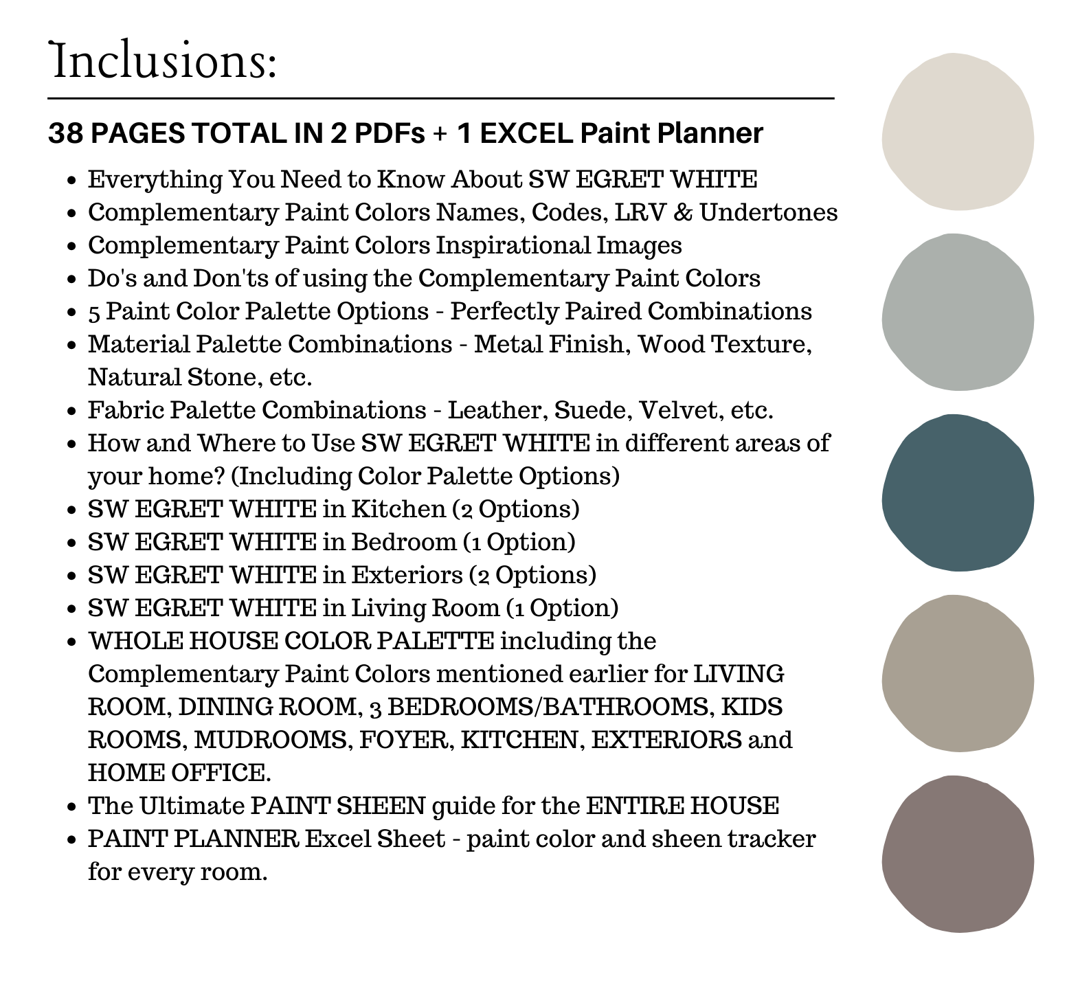 This is a *digital download* Sherwin Williams EGRET WHITE Color Palette PDF that contains 38 pages total of information to assist you with quick and easy color selections in your home.