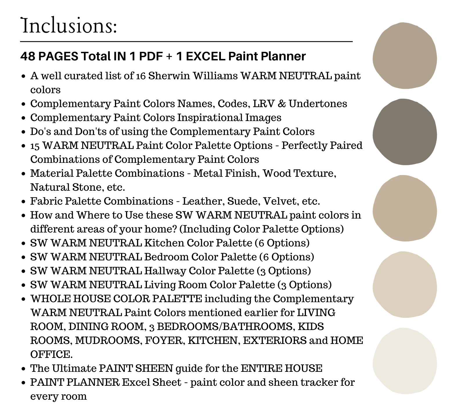 You can also find my listing on Etsy – Sherwin Williams WARM NEUTRALS
