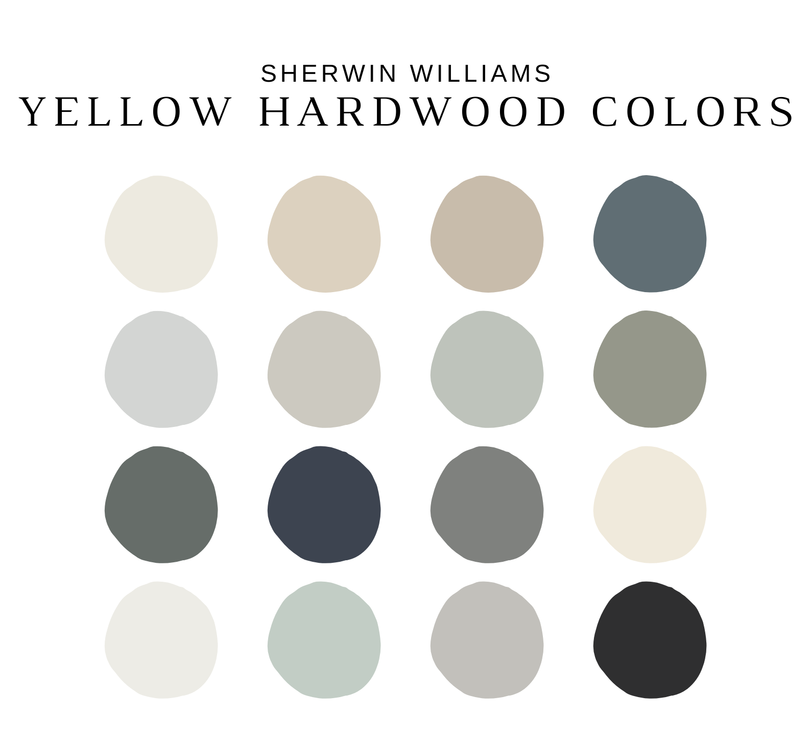 The PDF contains EVERYTHING you need to KNOW about Sherwin Williams Paint Colors that complement YELLOW OAK, PINE, and HONEY OAK flooring and cabinets! It includes a list of 16 complementary Sherwin Williams YELLOW OAK Paint Colors that complement each other and work as a WHOLE house color scheme. This is a PREPACKAGED Sherwin Williams YELLOW HARDWOOD Color Palette Selection Listing that includes the Sherwin Williams complementary color recommendations for walls, ceilings, trims, moldings, doors, and window frames – for your WHOLE HOUSE.