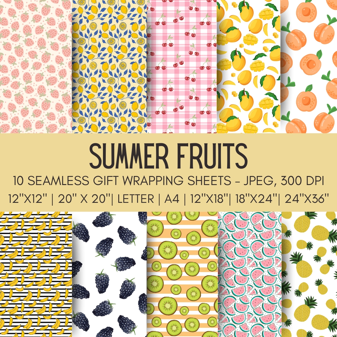 🍓 Summer Fruits Printable Gift Wrap – Instant Download